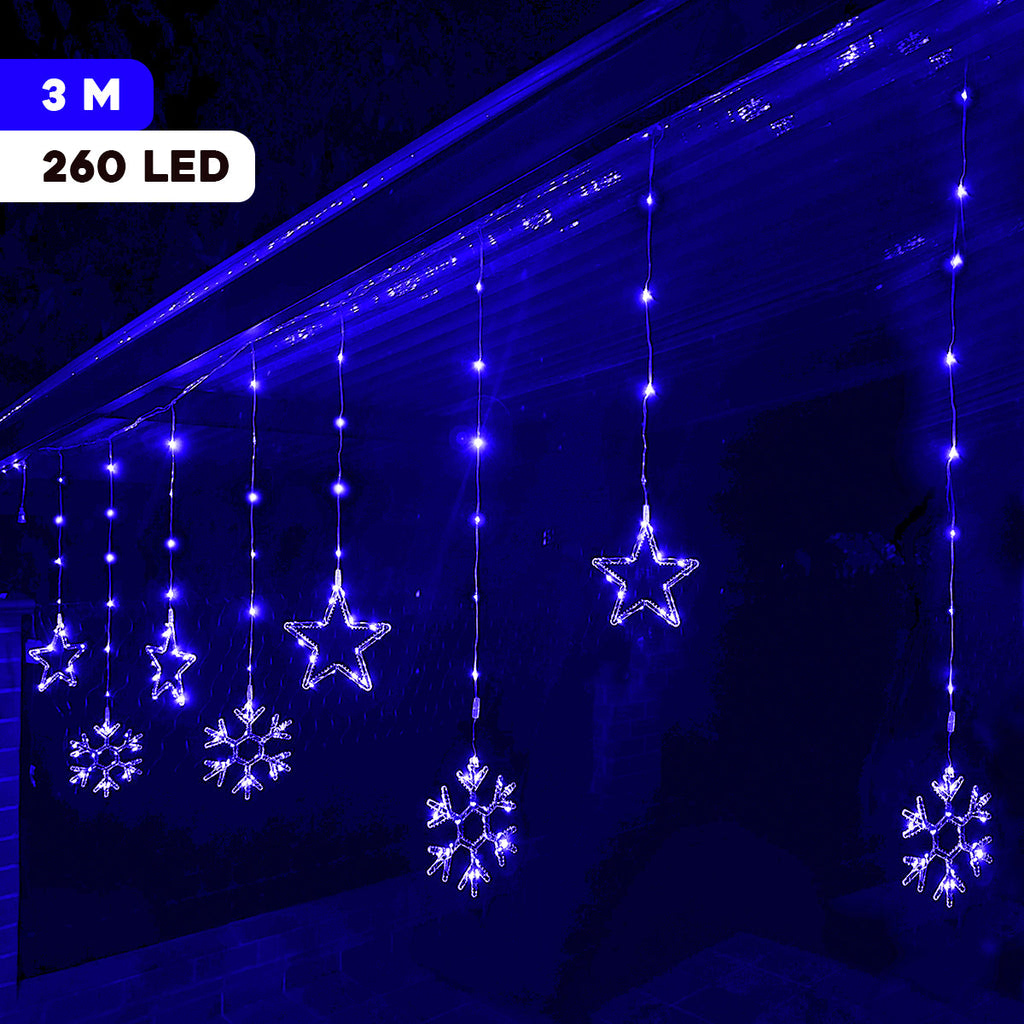 Juego de luces con forma de estrellas y copos de nieve para decorar tu hogar como lo desees ya que este juego de luces incluye 260 luces con tres metros de longitud. Ideal para ponerlas en grandes espacios o ventanas y hacer la...
