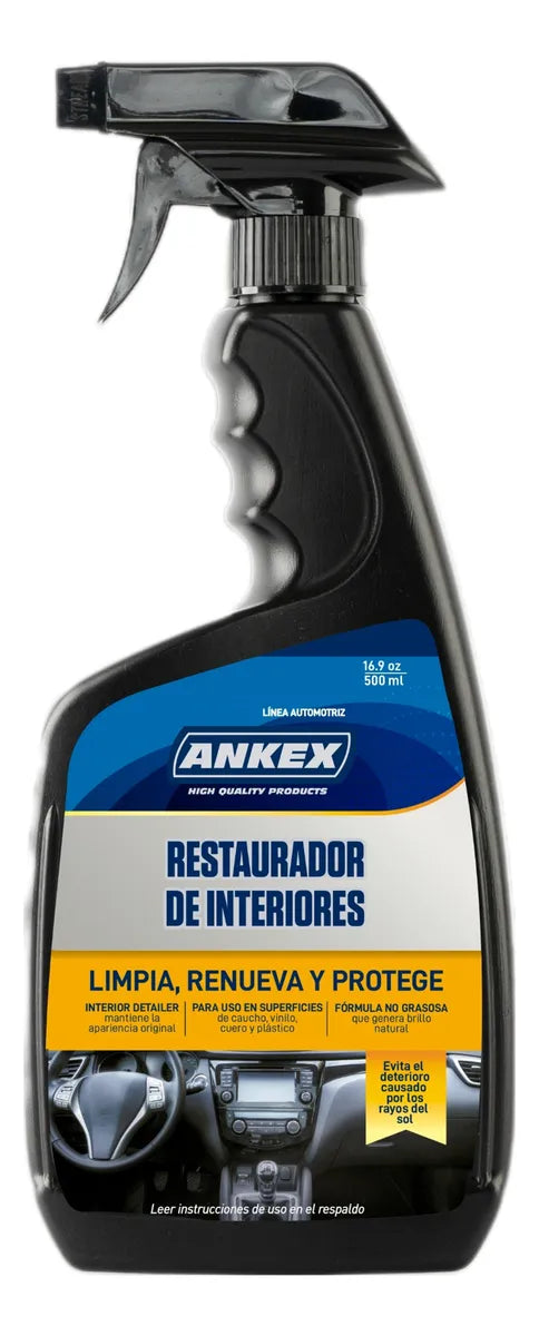 Restaurador de interiores ANKEX, interior detailer, tono mate. Limpia y restaura dando brillo natural a superficies de vinilo, caucho, plástico y cuero. Fórmula no grasosa que protege dando brillo natural. Evita la...