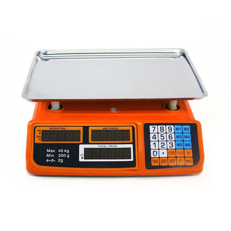 Balanza digital para máximo de 40 kg.Graduación mínima de 5 grs. Funcionamiento con batería recargable.Indicador de precio en ambas caras con números verdes.BandejaDisplay de nivelación.Portátil.