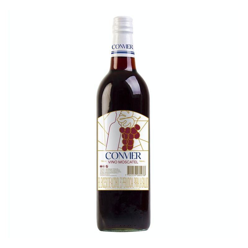 Vino moscatel convier bot x 750cm3. El exceso de alcohol es perjudicial para la salud. Ley 30 de 1986. Prohíbase el expendio de bebidas embriagantes a menores de edad ley 124 1994.