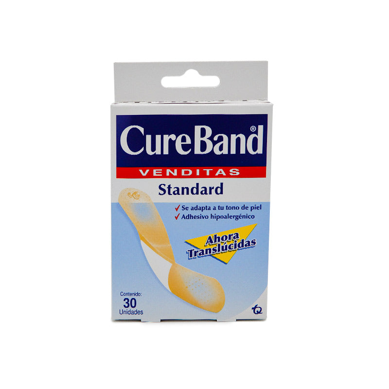 Curas venditas standar Cureband. Venditas que se adaptan a su tono de piel, adhesivo hipoalergénico, para cubrir las heridas de agentes externos.