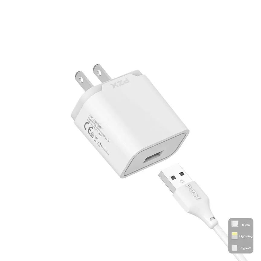 • Cargador PZX• TYPE-C• 2.4 A • Entrada: 110V-240V 50/60 Hz 0.6A• Salida USB• Largo del Cable: 1M