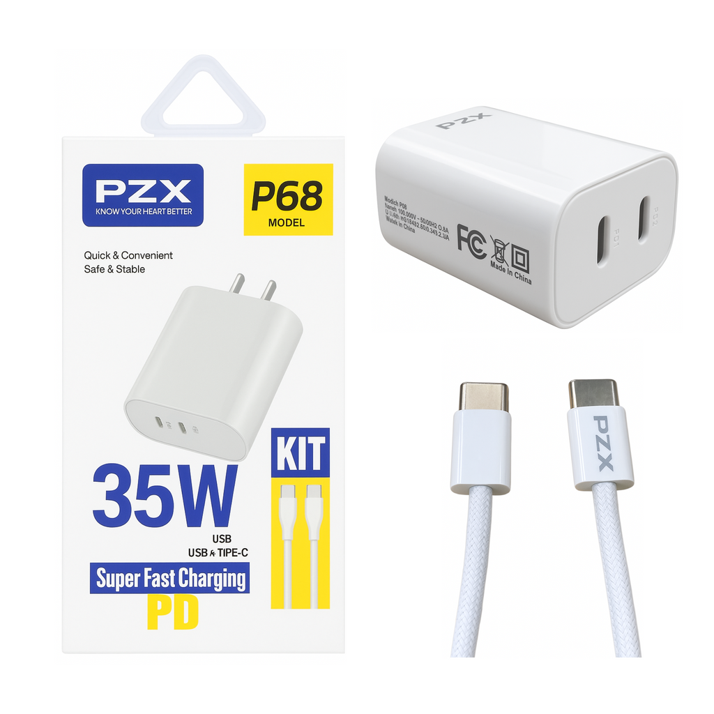 • Cargador Celular PZX• Entrada: AC100-240V/ 0.3A• Salida USB: 2.4A MAX• Salida PD• Color: Blanco• Cable redondo• Regulador de energía