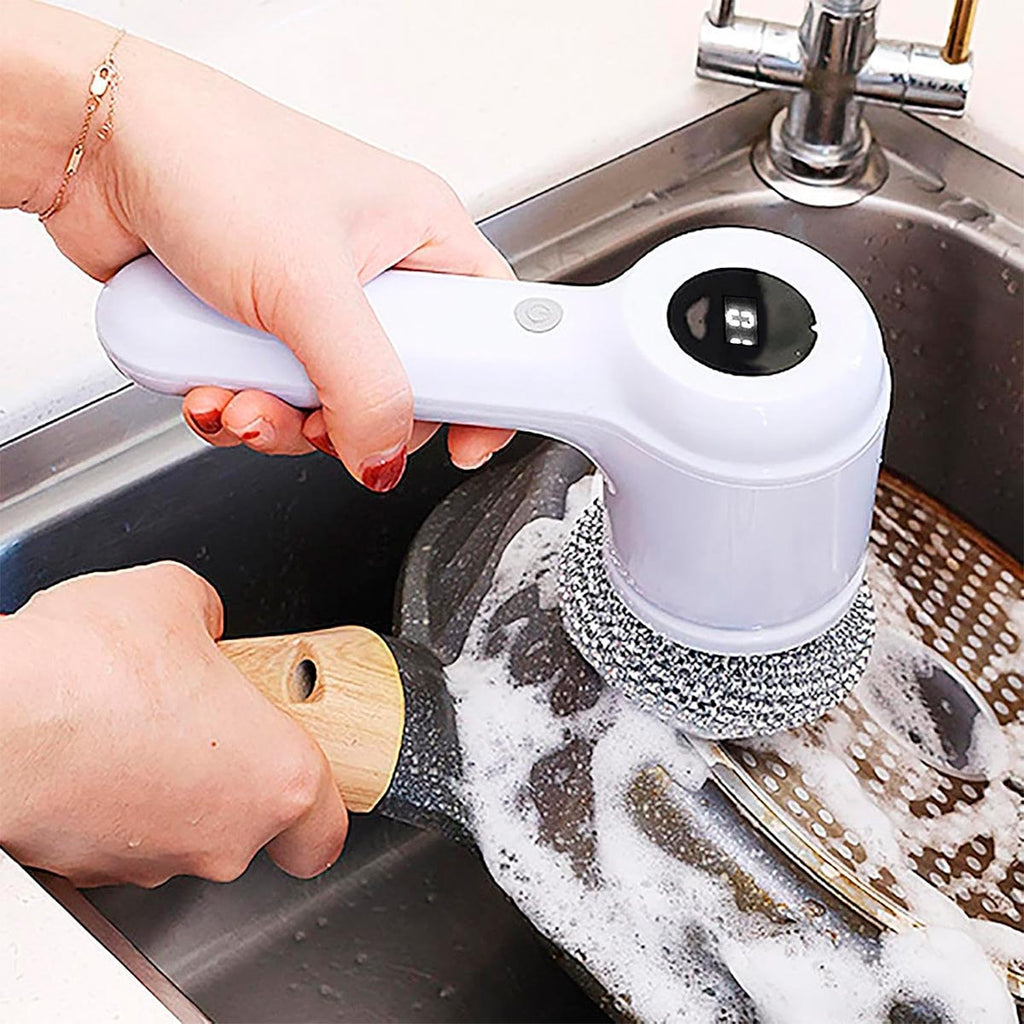Práctico cepillo arranca grasa eléctrico con el cual podrás limpiar tus platos, sartenes y fregadero en cuestión de minutos.