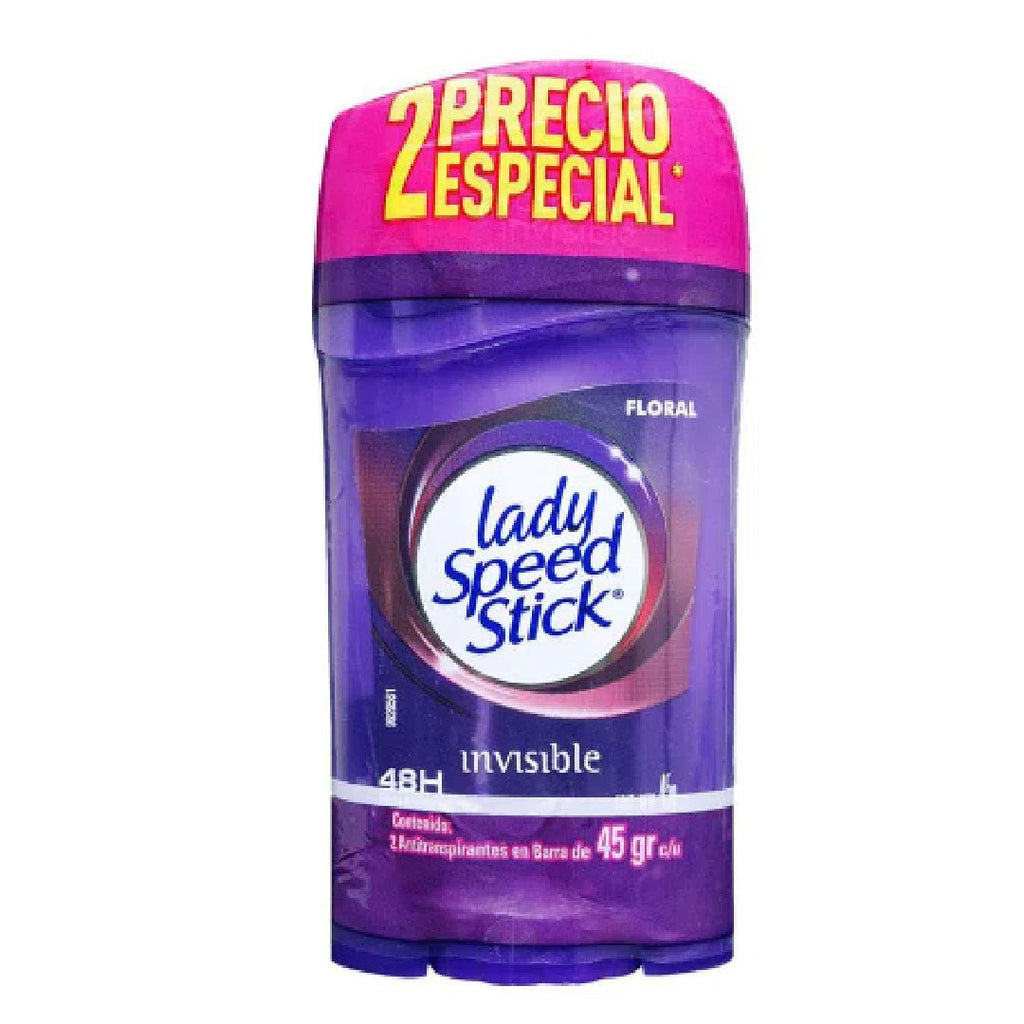 DESODORANTE MUJER LADY SPEED STICK BARRA INVISIBLE FLORAL 45GR X2