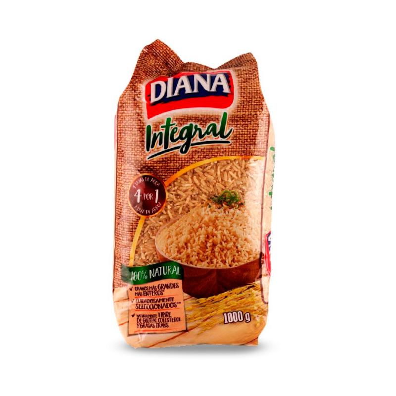 Arroz Diana Integral, es un arroz 100% natural seleccionado cuidadosamente para tener un arroz limpio. Además de ser integral es delicioso, para que te sientas bien por dentro y por fuera. Presentación 1000g