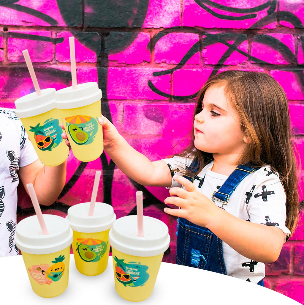 Este colorido set de vasos reutilizables es perfecto para llevar tus bebidas favoritas con estilo y diversión. Diseñados con motivos tropicales encantadores, son ideales para niños y adultos que buscan añadir un toque alegre a ...