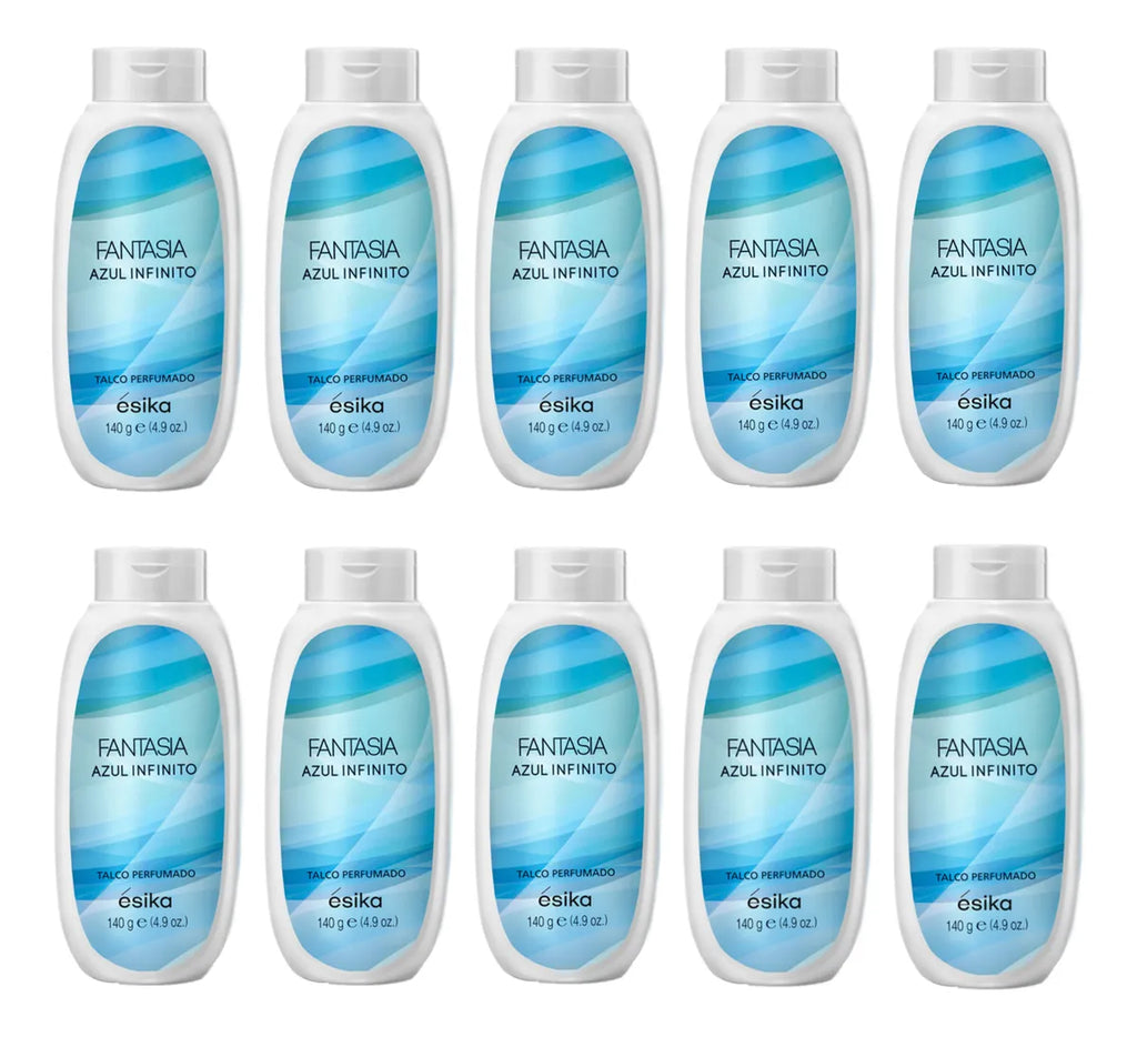 Talco corporal perfumado que perfuma y suaviza tu piel con el aroma frutal de la fragancia Fantasía azul infinito.
