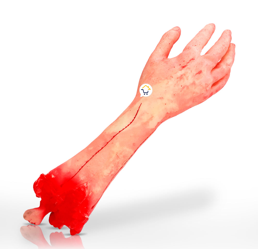 Accesorio sangriento ideal para la época de Halloween, úsalo como decoración o parte de tu disfraz, como un zombie, o un caníbal, tan realista que asustará a todos a tu alrededor.