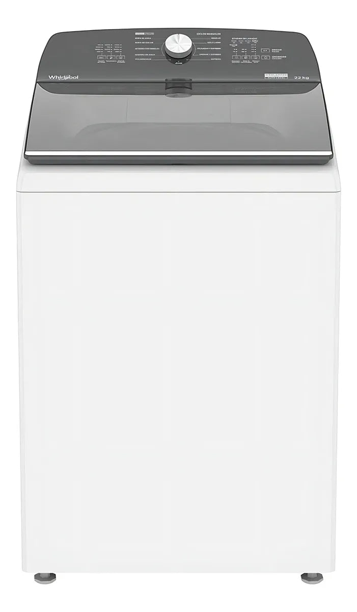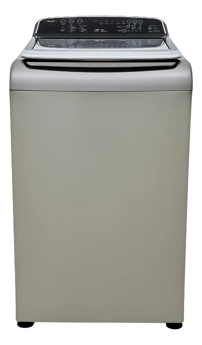 Lavadora carga superior con panel digital impermeable, resistente y de fácil manejo. Tapa de vidrio templado y filtro atrapa pelusas. Cuenta con nueve programas...