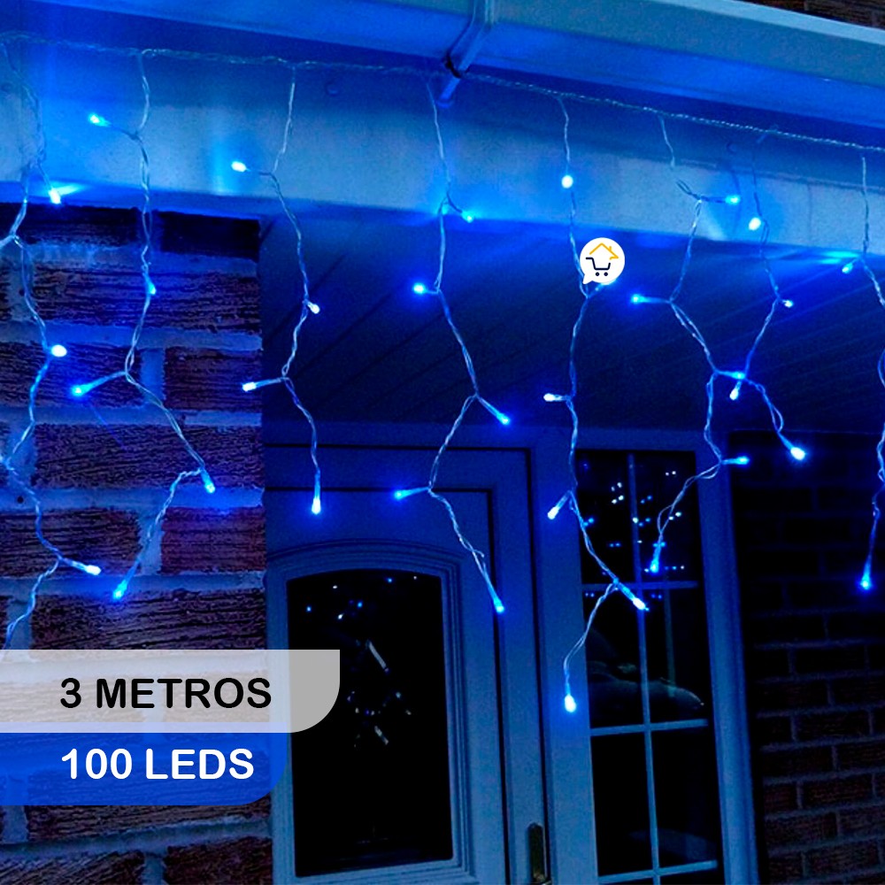 Color: Azul. Todas las tiras tienen 45 cm de caída. Distancia entre cada tira: 20 cm aprox. Tensión voltaje: 110 V. Potencia M...
