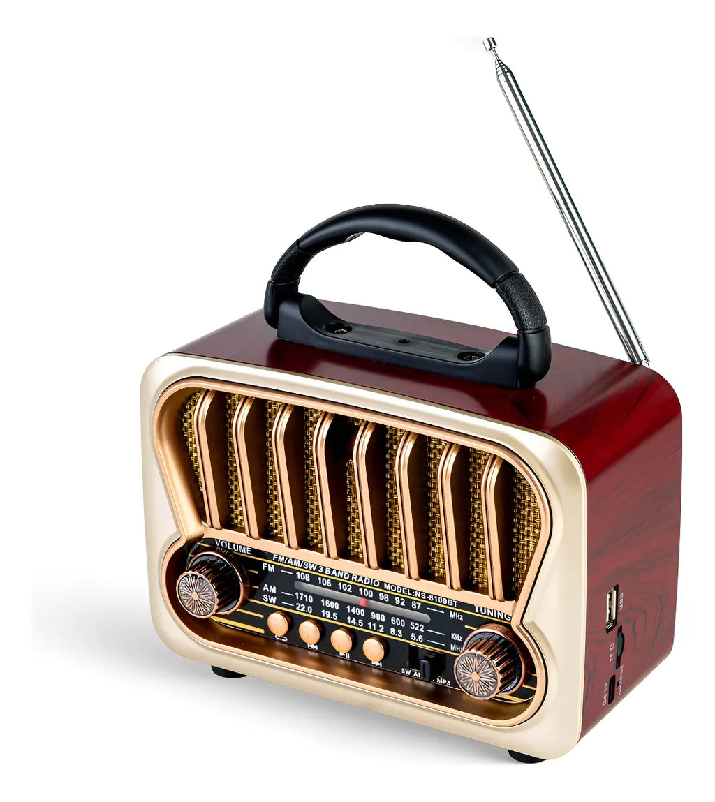 El Radio Vintage AM/FM/SW con Bluetooth, USB y Recargable MP3 combina estilo retro con tecnología moderna. Sintoniza emisoras locales e internacionales co...
