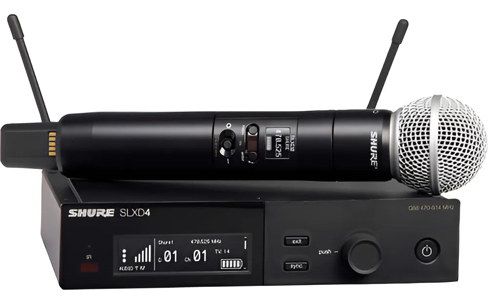 El Shure SLXD24 / SM58 ofrece a los presentadores y artistas un sistema de micrófono de mano inalámbrico que es confiable, fácil de configurar y presenta una calidad de sonido digital nítida.