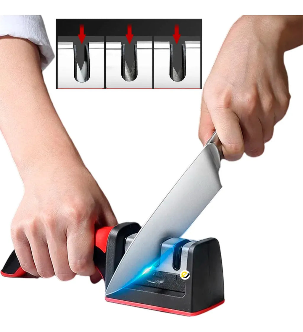 -Afilador de cuchillos apto para una gran variedad de cuchillos, incluye una ranura para tijeras, afilado fino y grueso.