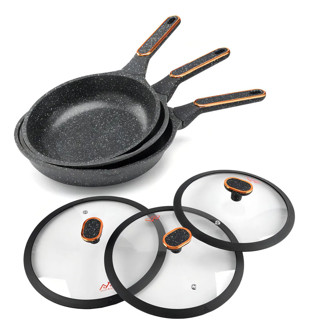 ¡Renueva tu cocina con el Set x 3 Sartenes Antiadherentes en Granito Cocción Saludable! Este juego de sartenes incluye 3 tamaños (24, 26 y 28 cm), diseñados para ofrecer una experiencia de cocción práctica y saluda...