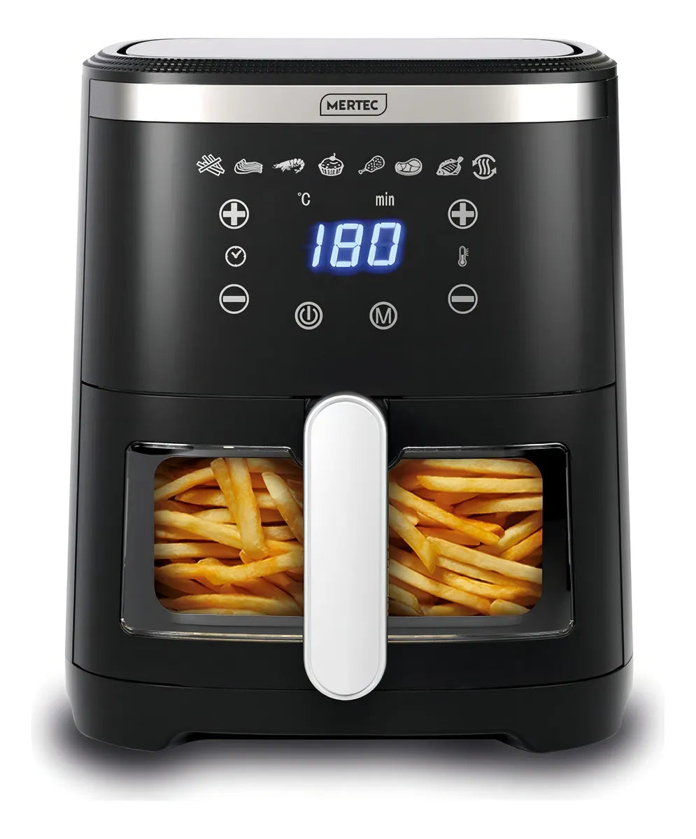 Descubre la Freidora De Aire Digital Mertec de 4.2 litros, la solución perfecta para disfrutar de comidas saludables y deliciosas. Con su potente motor de 1300 W, esta freidora garantiza una cocción rápida y eficie...