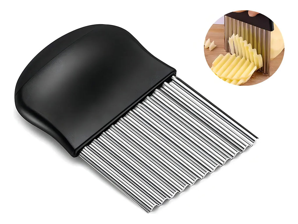 Transforma la presentación de tus platos con el Cortador Papa Rizada Ondulada. Este utensilio de cocina, diseñado para facilitar el corte de verduras y frutas, permite crear formas onduladas que añaden un toque esp...