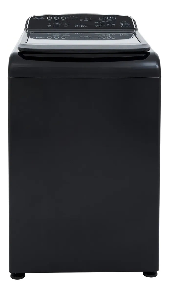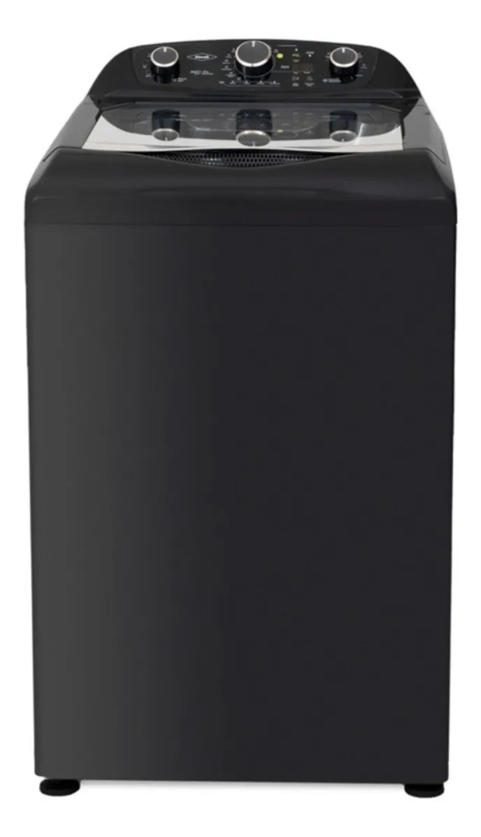 Lavadora carga superior con panel digital impermeable, resistente y de fácil manejo. Tapa de vidrio templado y filtro atrapa pelusas. Cuenta con nueve programas...