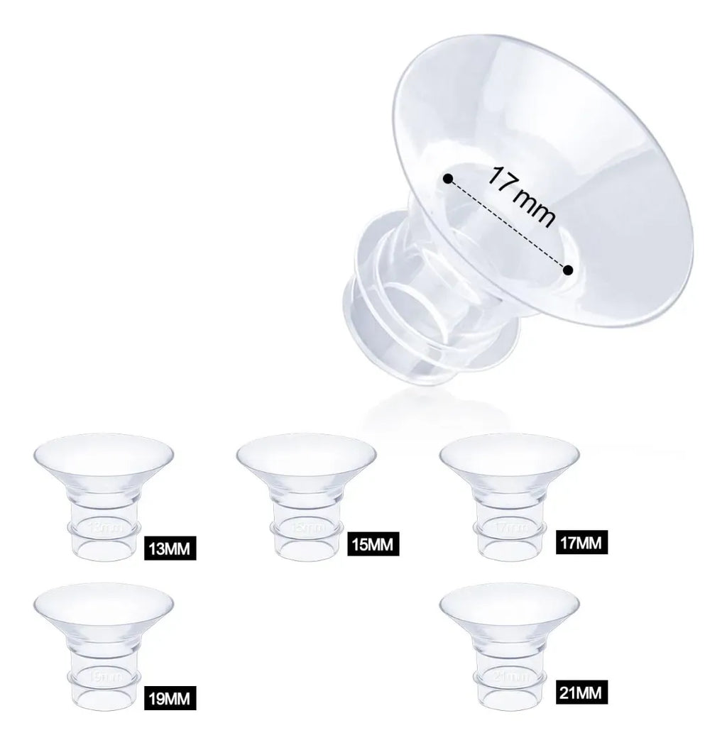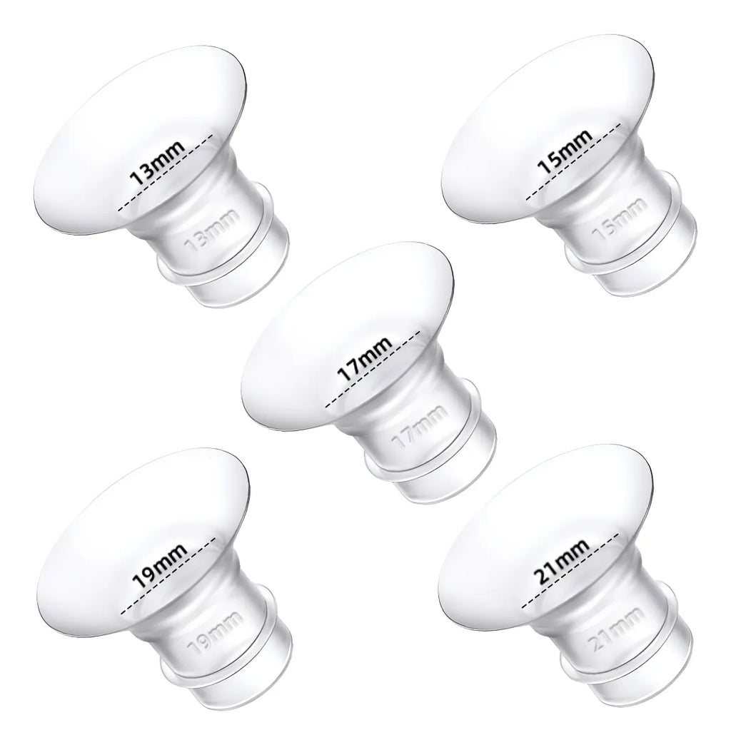 Insertos de brida de 13/15/17/19/21 in (paquete de 5) compatibles con bridas/escudos de 0.945 in de la mayoría de las bombas, inserto para accesorios de repuesto de extractor de leche, reduce el túnel de pezón de 0...