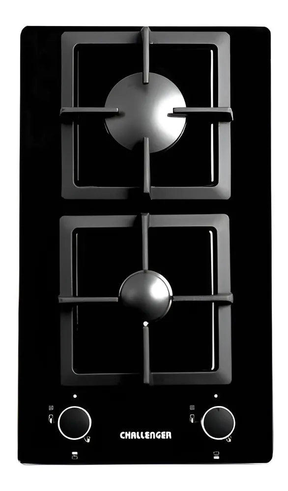 Estufa de Empotrar de 2 Puestos Challenger en Vidrio Templado de 52x30 cm, alimentación a Gas Natural con posibilidad de cambio a Gas Propano (GLP); Quemadores ita...