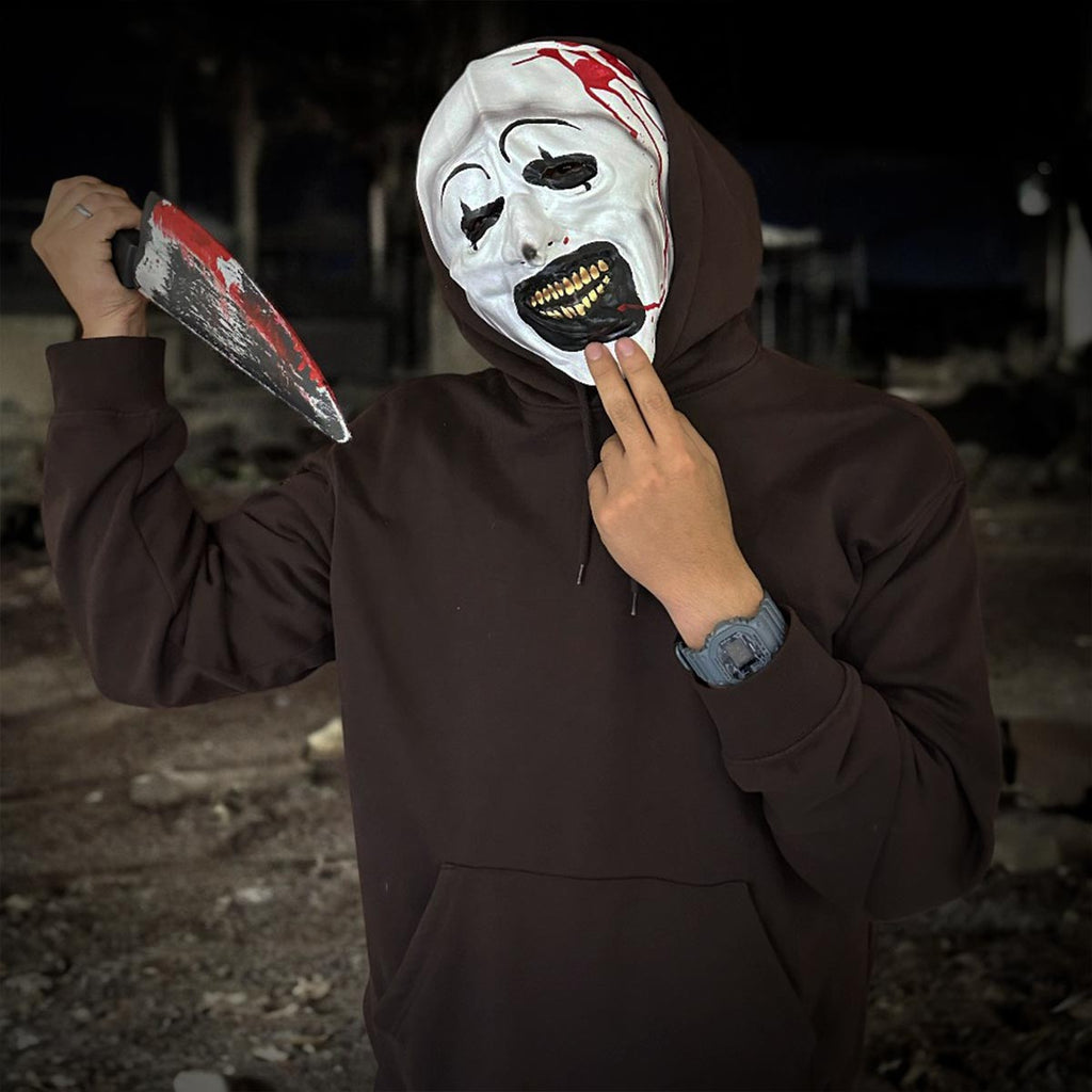 Máscara de payaso asesino, la cual será el complemento perfecto de un atuendo de payaso macabro, serás la sensación de noche de brujas. Material: Látex. Tamaño: 38 x 35 x 16 cm Tamaño empaque: 14 x 16 x 7 cm Peso: 268 g.  ...