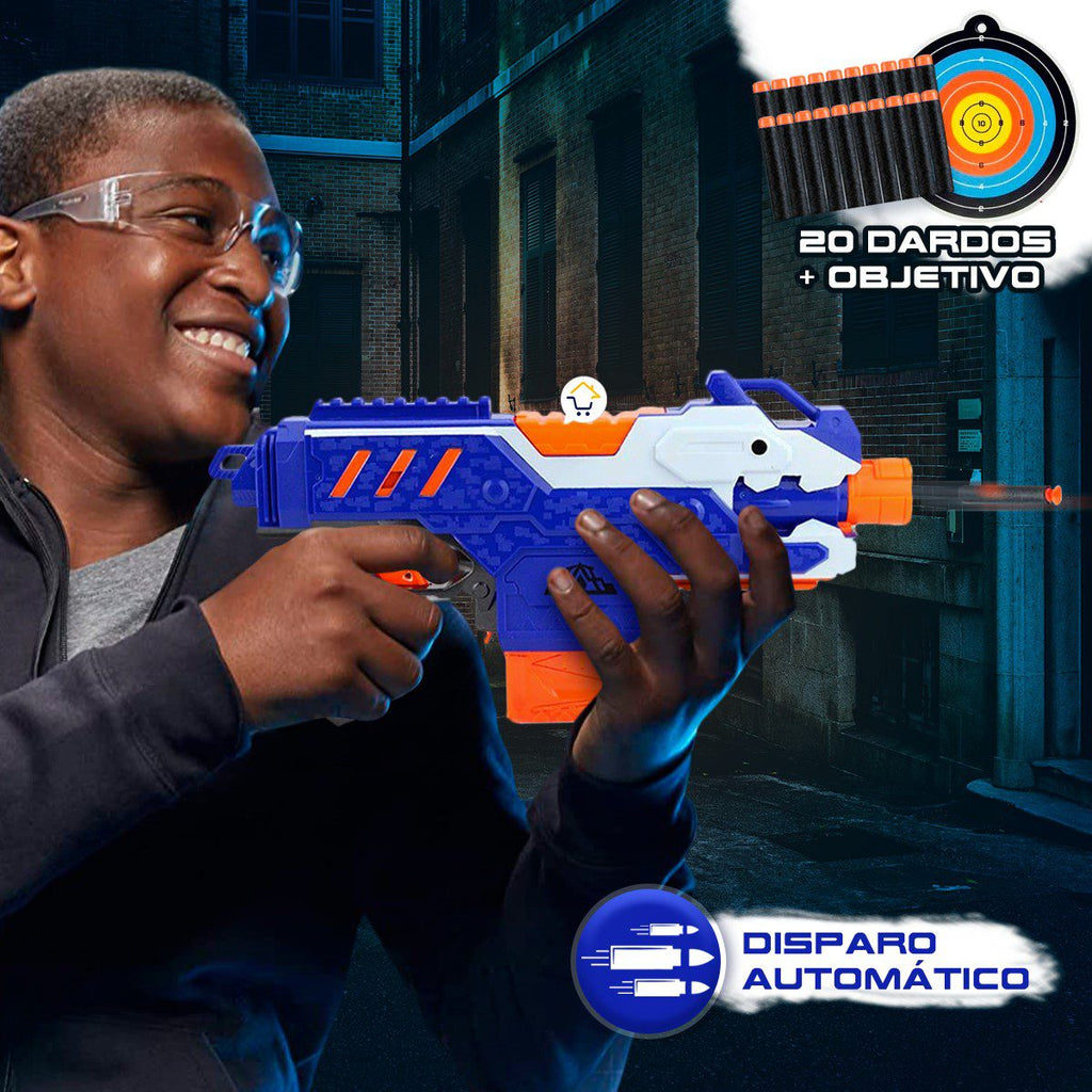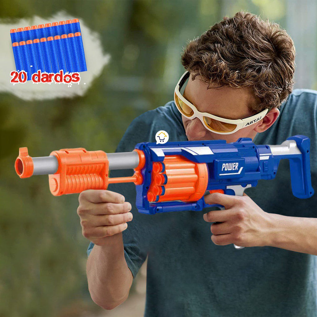 Peso: 520 g. Alcance: 10 metros aprox. Dardos incluidos: 20 unidades. Modo de uso:
