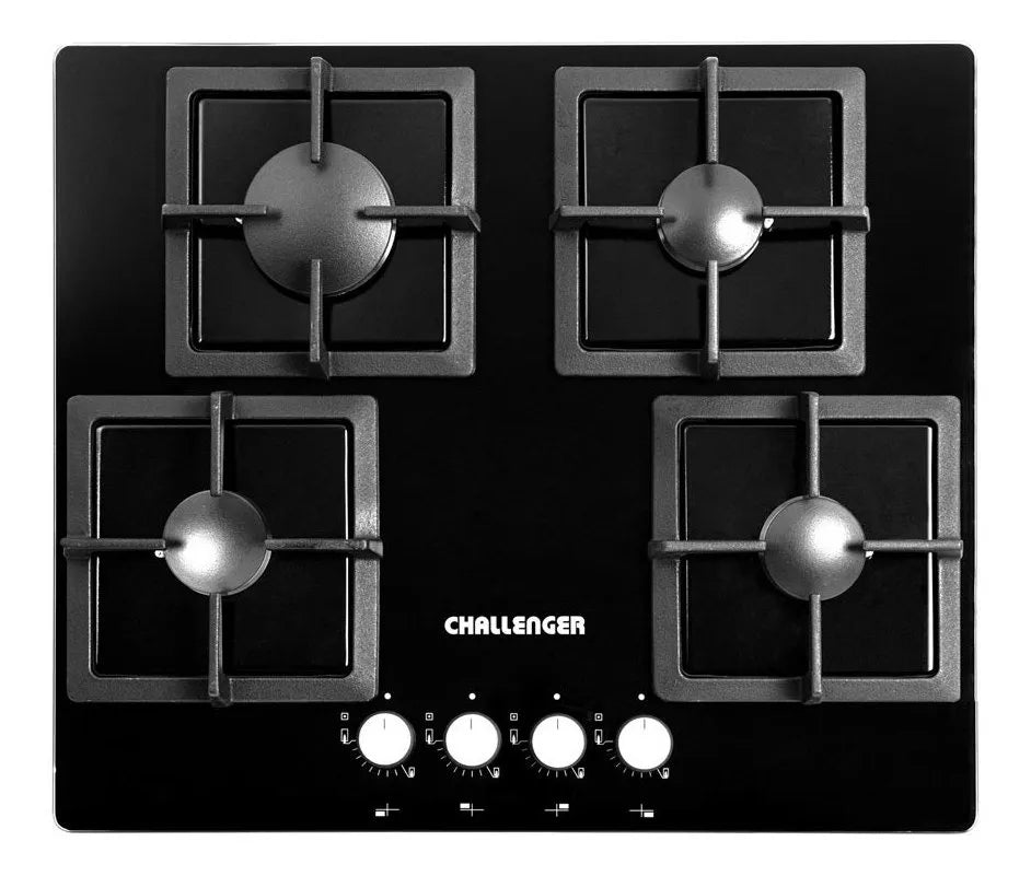 Estufa de Empotrar de 4 Puestos Challenger en Vidrio Templado de 60x52 cm, alimentación a Gas Natural con posibilidad de cambio a Gas Propano (GLP); Quemadores italianos SABAF de alta eficiencia que reducen tiempos...