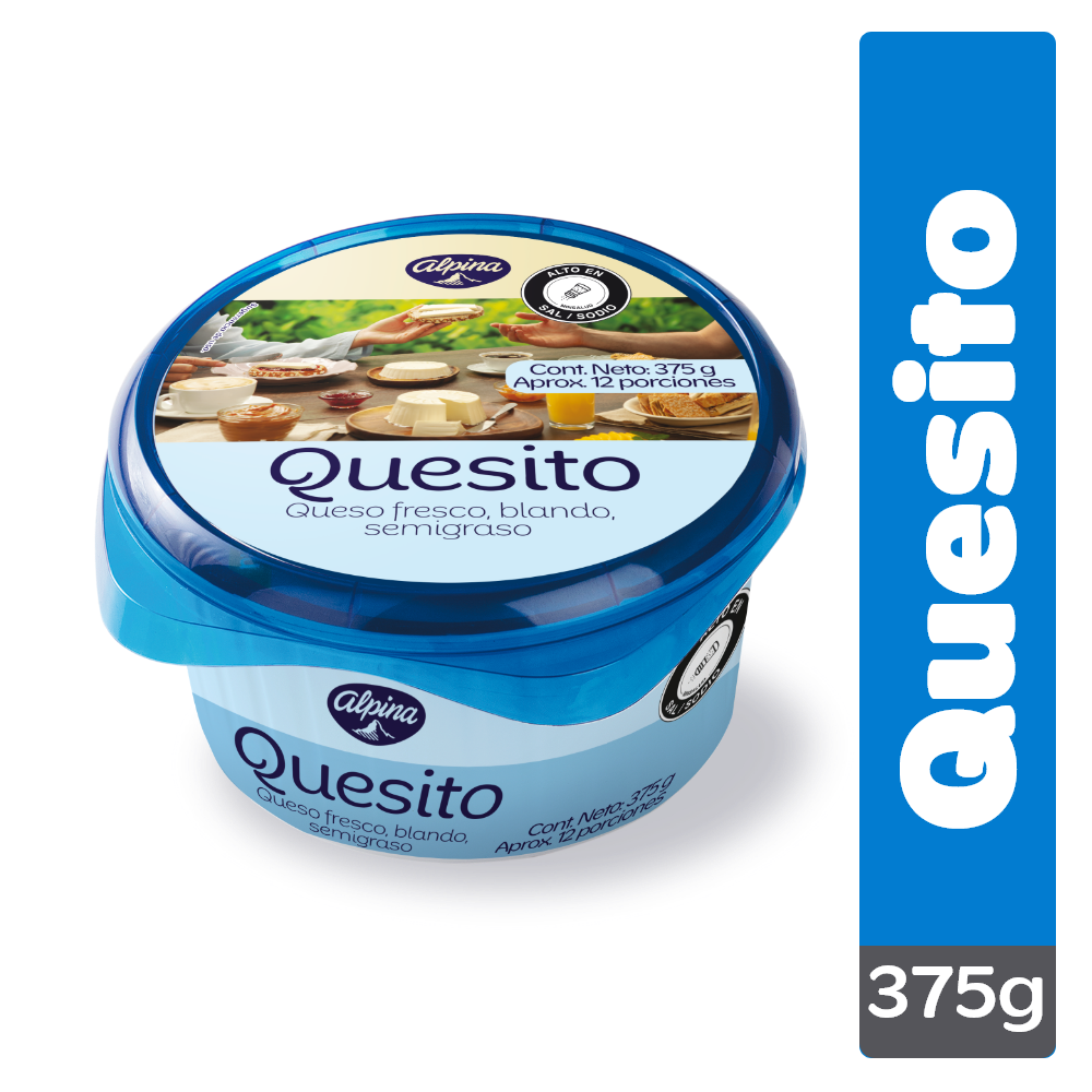 Quesito Alpina es un queso fresco con un sabor único y un empaque innovador. Una porción de 30 gramos es una buena fuente de calcio, nutriente importante para el mantenimiento de huesos y dientes.