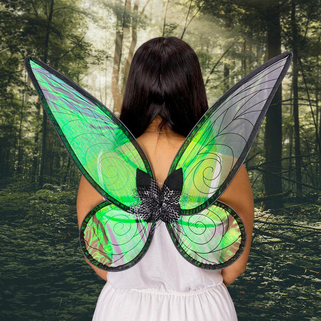 Alas de hada ideales para complementar tu disfraz, si lo añades a un lindo vestido y una varita llevarás la magia contigo y todos a tu alrededor te observarán, con detalles tornasol en las alas que te harán lucir un disfraz sin...