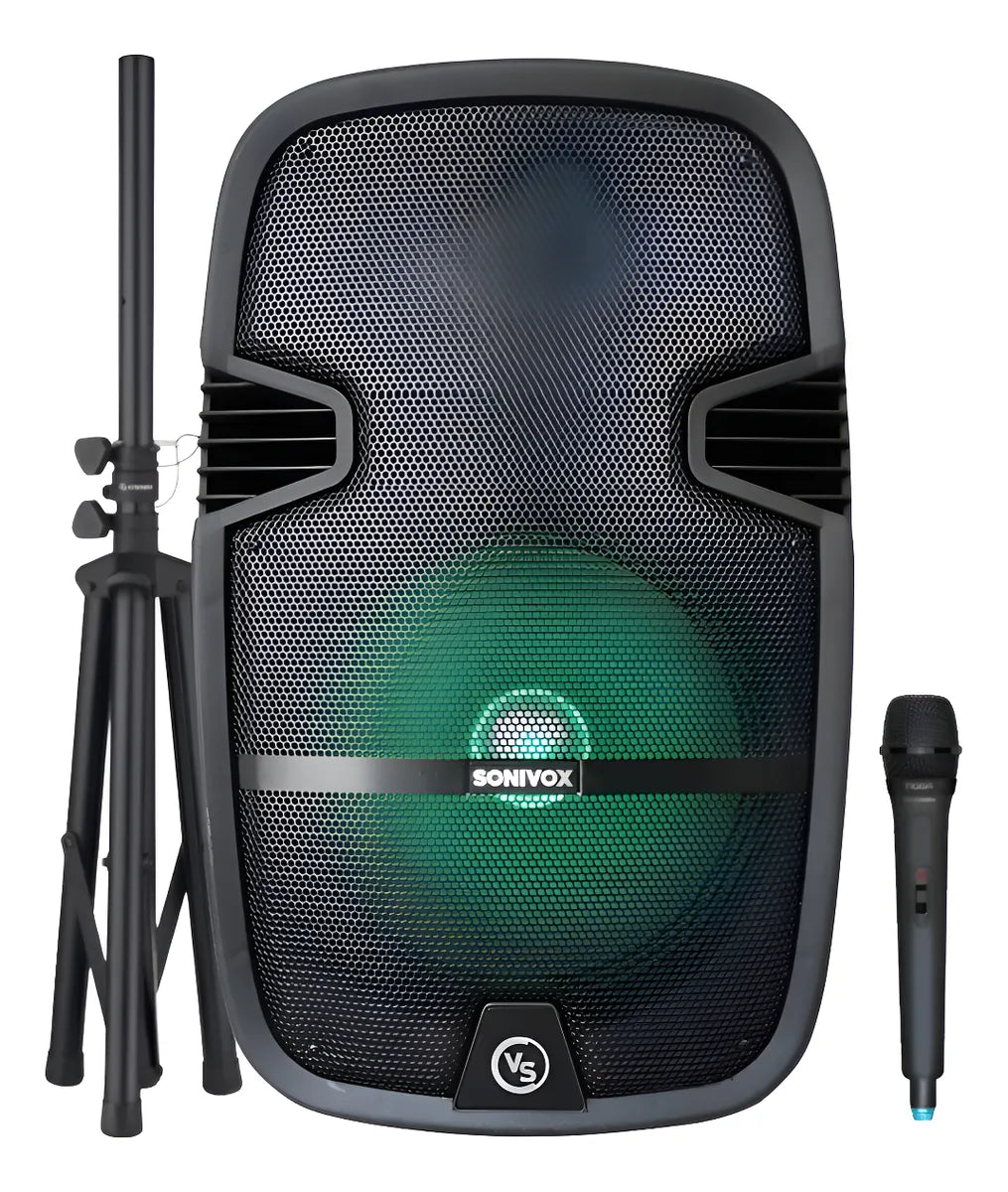 Cabina Bluetooth 12 Sonivox VS-2285 FM TF USB Mic LED Musica Control Súper moderno con sonido estéreo envolvente, ideal para lugares de campo sin corriente de forma recargable, cuenta con microfono inalambrico y ad...