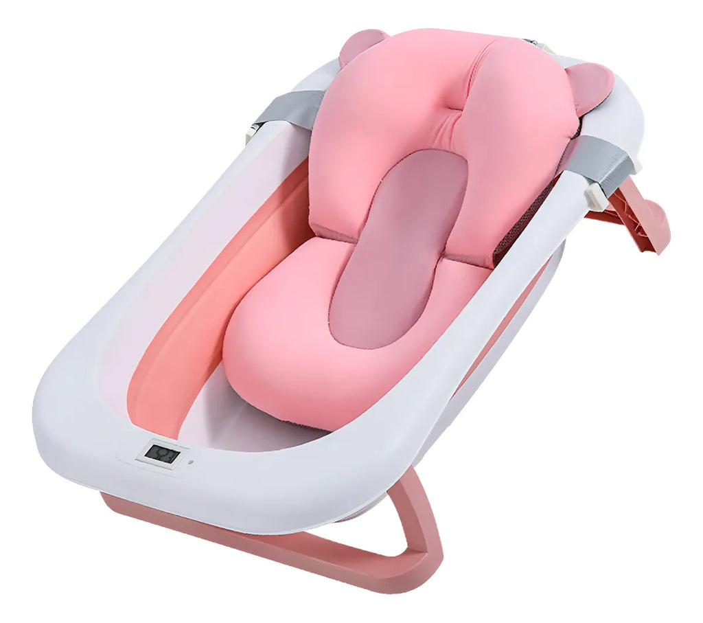 Bañera Tina Plegable Para Bebé Con Termómetro + Cojín Malla