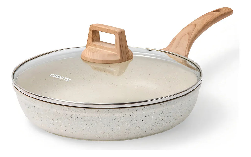 Descubre la excelencia en tu cocina con el Sartén Antiadherente de 8 Pulgadas de Carote, diseñado con un elegante acabado en granito blanco que no solo embellece tu espacio de cocina sino que también asegura una co...
