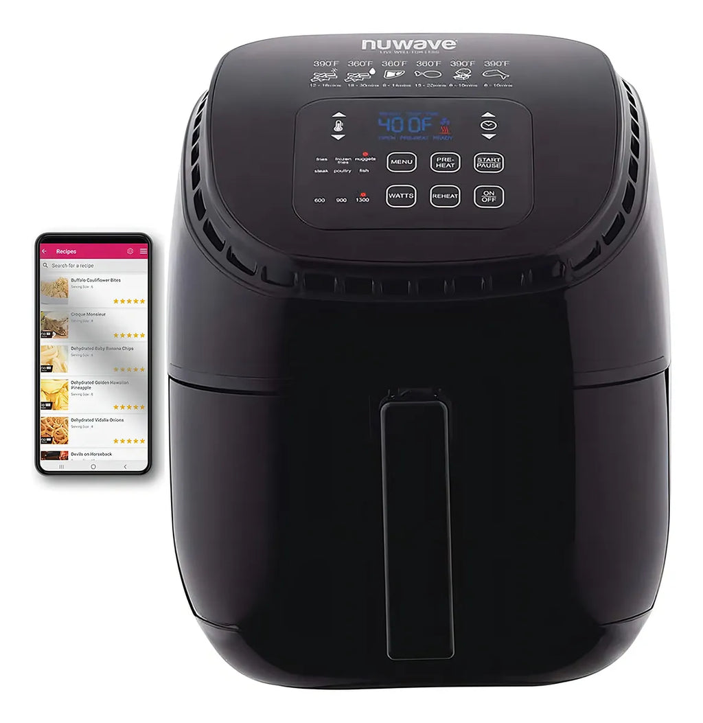 Nuwave Brio Freidora de aire de 3 cuartos de galón, con controles digitales de pantalla táctil y pantalla fácil de leer. Los controles de temperatura varían de 100 °F a 390 °F en incrementos de 5°, gracias a su tec...