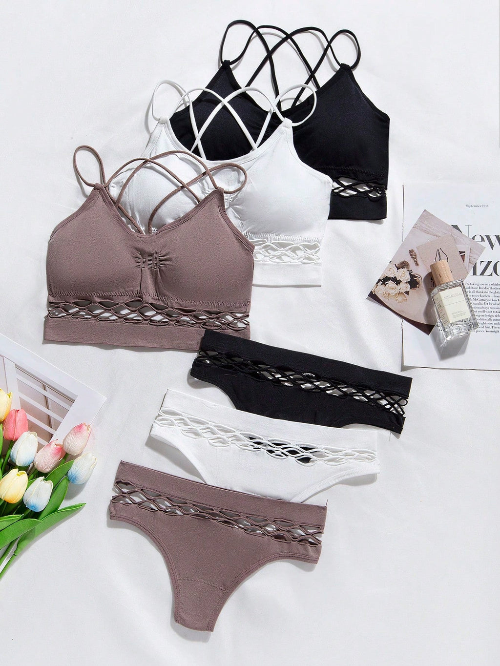 Conjunto de Brasieres y Tangas deportivas para mujer con estampado de corazones y detalles de letras