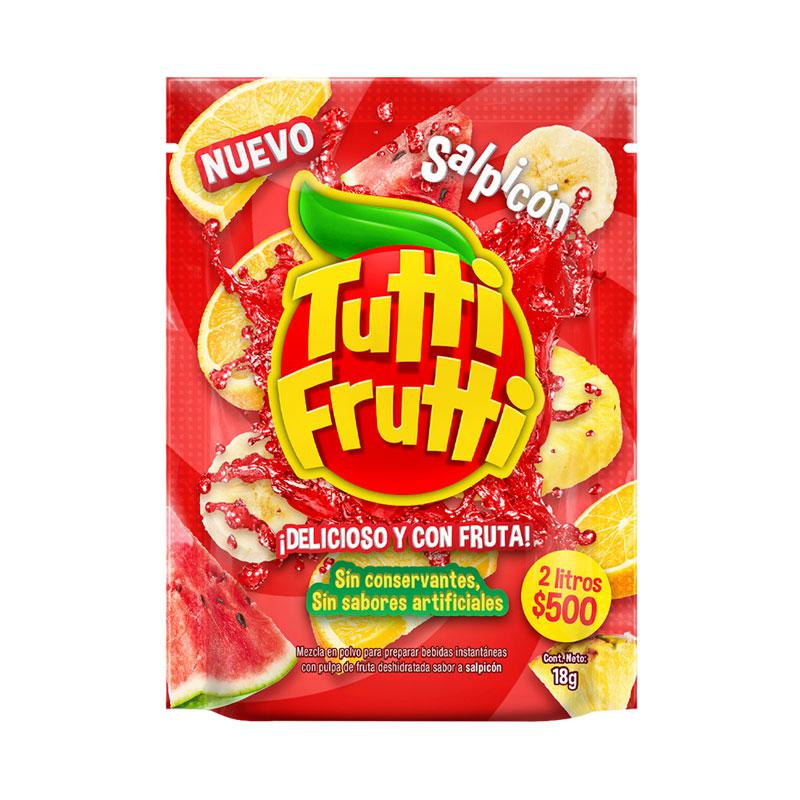Disfruta de todo el sabor de Tutti Frutti en sobre: es delicioso, refrescante, con vitaminas y un increíble sabor a salpicón.