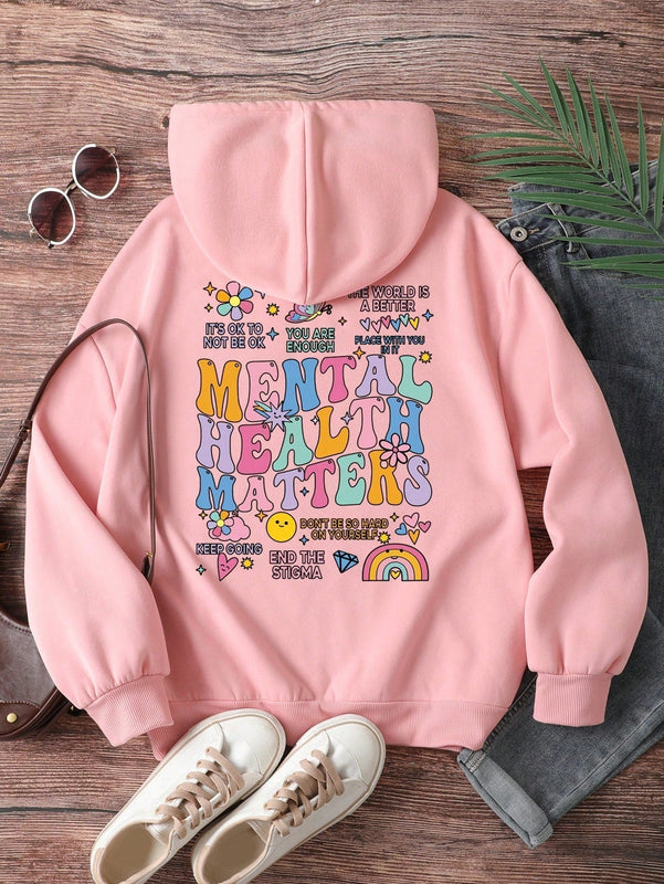 Ezwear sudadera con capucha de manga larga, impresion de eslogan, casual y holgada para mujer, otono/invierno