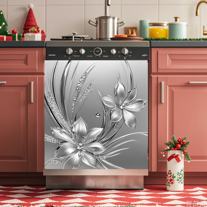 1 pieza de metal plateado con relieve de flores 2D, cubierta magnética para puerta de lavavajillas, decoración con imán, imán de flores de metal plateado, imán plateado, adecuado para decoración de pintura de cubierta de puerta de lavavajillas, póster de