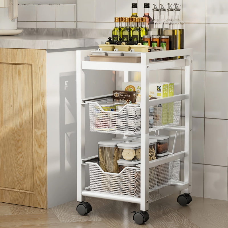 1pc estante de almacenamiento con 3/5 niveles, estante móvil con ruedas, cesta de drenaje multicapa, ideal para condimentos, platos y tazones, material acero al carbono,