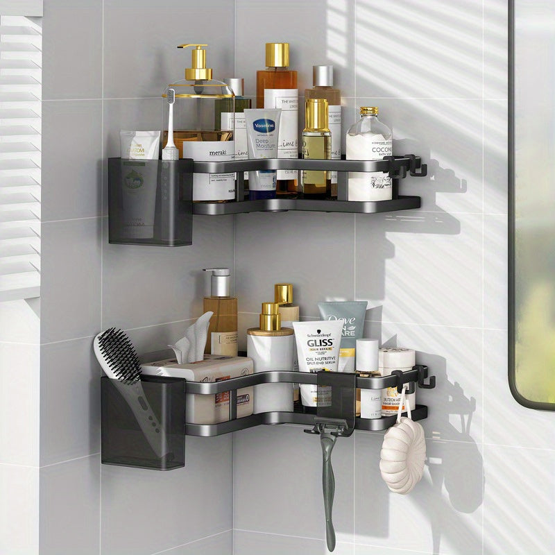 2pcs Estantes de Esquina de Acero Inoxidable para Baño y Cocina - Sin Taladro, Estantes de Almacenamiento Montados en la Pared