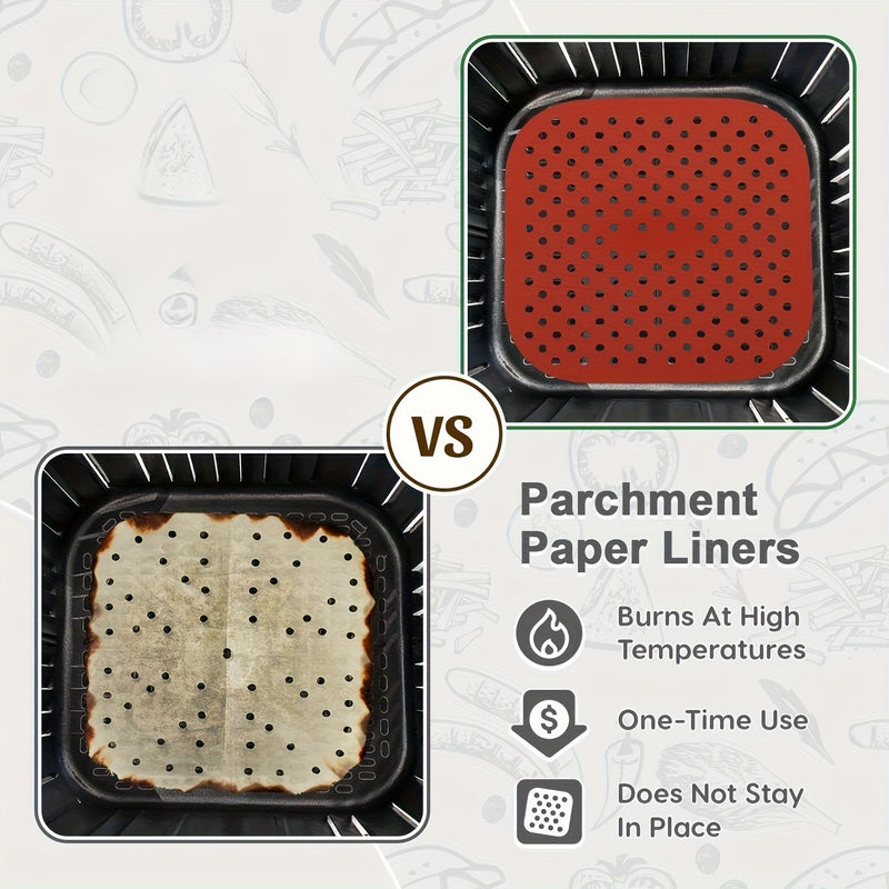 3 Piezas de Tapetes de Silicona para Freidora de Aire, Antideslizantes y Resistentes al Calor hasta 230°C - Soporte Multi-Tamaño y Protector de Encimera para Ninja/Philips/Cosori (Apto para Lavavajillas)