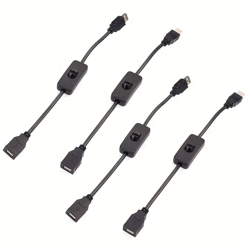 4 piezas de Cables Controlador Macho a Hembra USB 2.0 de 32cm con Interruptor On/Off, Cables Duraderos 22AWG para PC, TV, Coche, Ventiladores USB, Tiras LED 5V - Compatible con HomeKit, Alimentación por USB de 36V, Gestión de Energía del Dispositivo, Dis