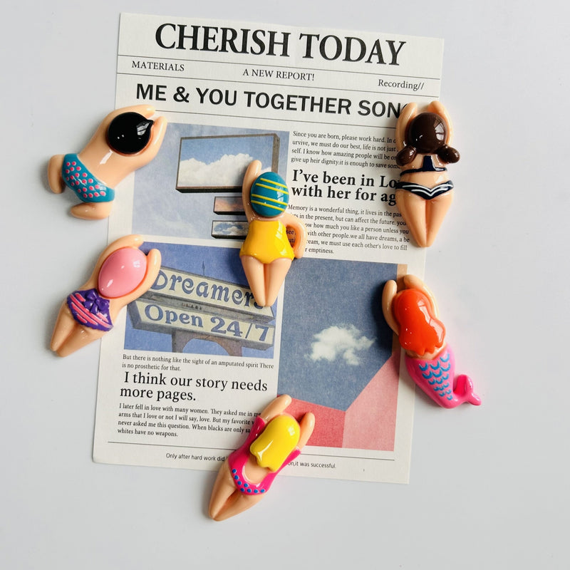 6 Piezas de Imanes Grandes para Nevera con Diseño de Mujer Nadando, Decoración Magnética para Lavavajillas, Adhesivos Lindos de Playa y Verano, Accesorios para Cocina y Pizarra Blanca, Decoración del Hogar, Pegatinas Yongcheng