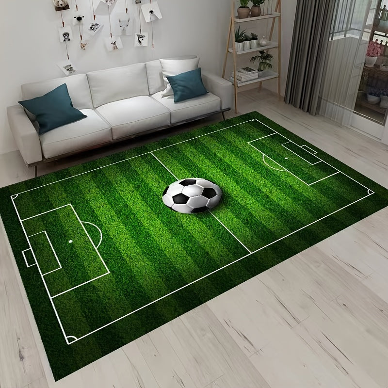 Alfombra de césped con diseño 3D de campo de fútbol, 1 pieza, suave y cómoda, antideslizante y duradera, para dormitorio, sala, pasillo, entrada, baño, decoración del hogar y jardín, accesorios de primavera