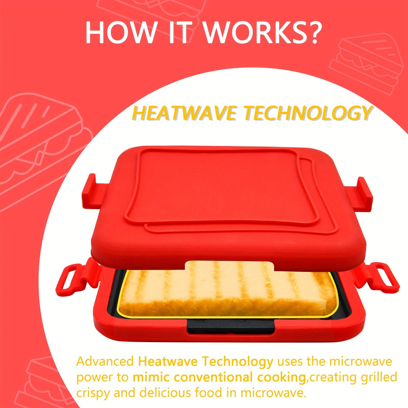 Bandera para Sándwich en Microondas – Bandeja para Hornear Tostadas Rápidas y Crispy, Antiadherente, Hierro de Grado Alimenticio, Ideal para BBQ, Salchichas, Alitas de Pollo, Filetes y Más, Rojo con Asas de Fácil Agarre, Calentamiento de Alimentos|Diseño