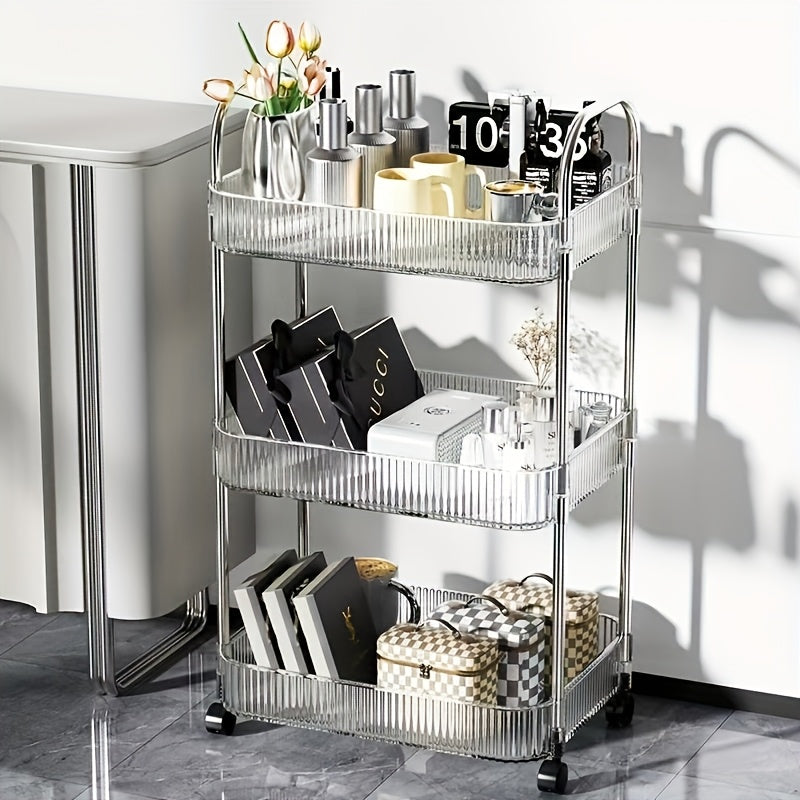 Carrito de Almacenamiento de Acrílico Transparente de 1 Pieza con Ruedas, Organizador Multiusos Transparente, Estante Vertical en Capas para Dormitorio, Baño, Cocina - Plástico, No Requiere Montaje