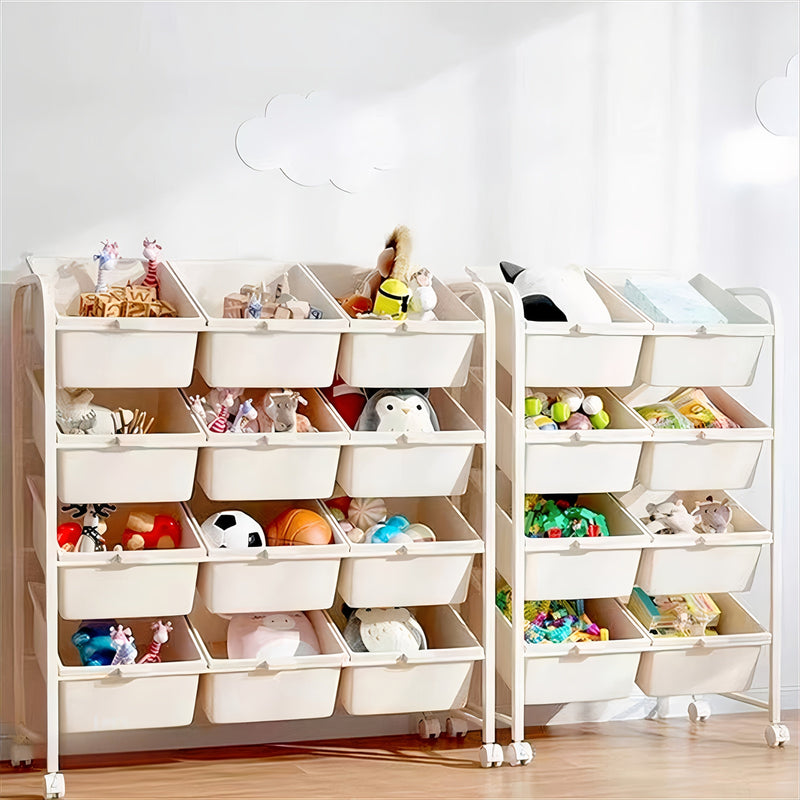 Carrito de almacenamiento giratorio de 2/3/4/5 niveles con ruedas - Estructura de acero resistente con estantería modular con contenedores de plástico extraíbles, organizador móvil fácil de ensamblar para el hogar y la oficina - Blanco, estantería para l