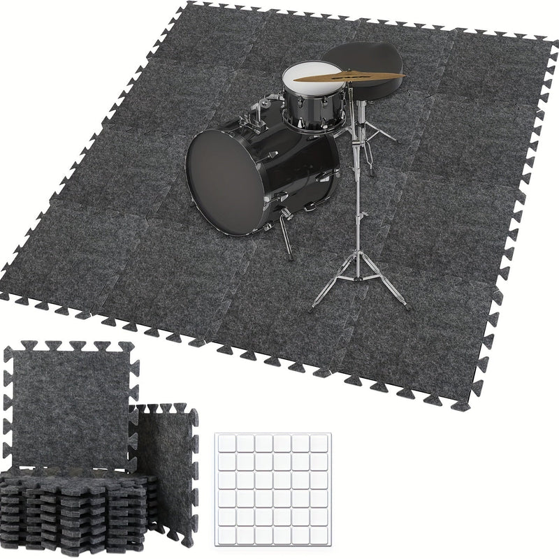 Conjunto de batería de alta calidad 2/4 de alta densidad Alfombra de espuma antirruido interbloqueable - Gruesa, Antideslizante y Absorbente de choques - Gris