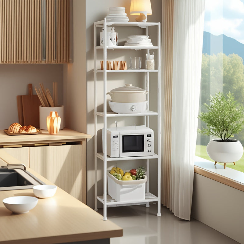 Estante de almacenamiento de cocina de 6 niveles, negro/ blanco, con marco de metal, estante multifuncional independiente para baño, garaje, sala de estar, estante extraíble, no requiere ensamblaje, solución de almacenamiento de cocina | Estante de cocin