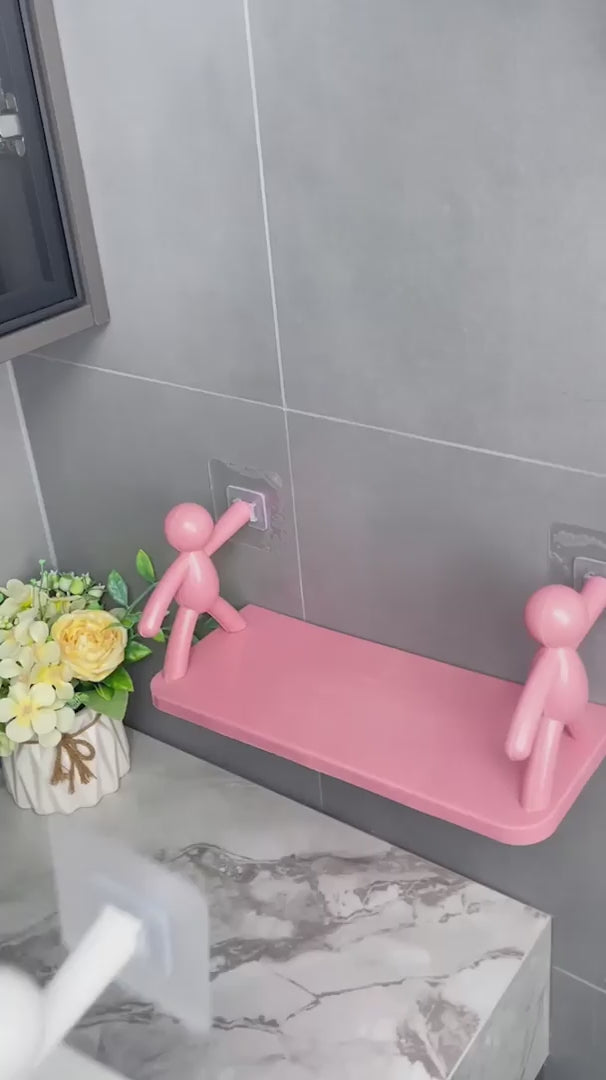 Estantes de pared modernos de plástico con figuras humanoides - Estantería de almacenamiento de varios niveles para baño, cocina o decoración de baño, detalles blancos y dorados, diseño de colgamiento de pared, estantes de baño | Estantes de pared modern