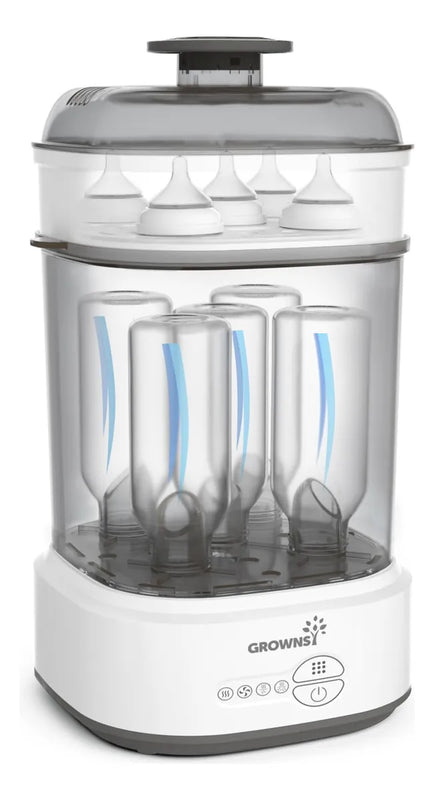 ,-Tranquilidad: con funcion de secado seguida automaticamente despues de un 99.99% de esterilizacion con vapor, el desinfectante de biberones de Grownsy evita eficazmente que el moho crezca dentro de los biberones. El filtro integrado evita la contaminacion secundaria por exposicion a nueva contaminacion en el aire. Doble proteccion, el doble de amor.